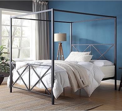 By dhp (41) black queen size metal canopy platform bed frame with headboard and footboard.