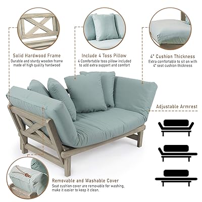 Wooden Sofas With Removable Cushions - Buy Cambridge Casual Solid Wood West Lake Outdoor Convertible Sofa Daybed Weathered Gray Blue Spruce Cushion Online In Indonesia B01m04c9ti - Wood frame couch wood frame couch with removable cushions new wooden simple design decor within wood.
